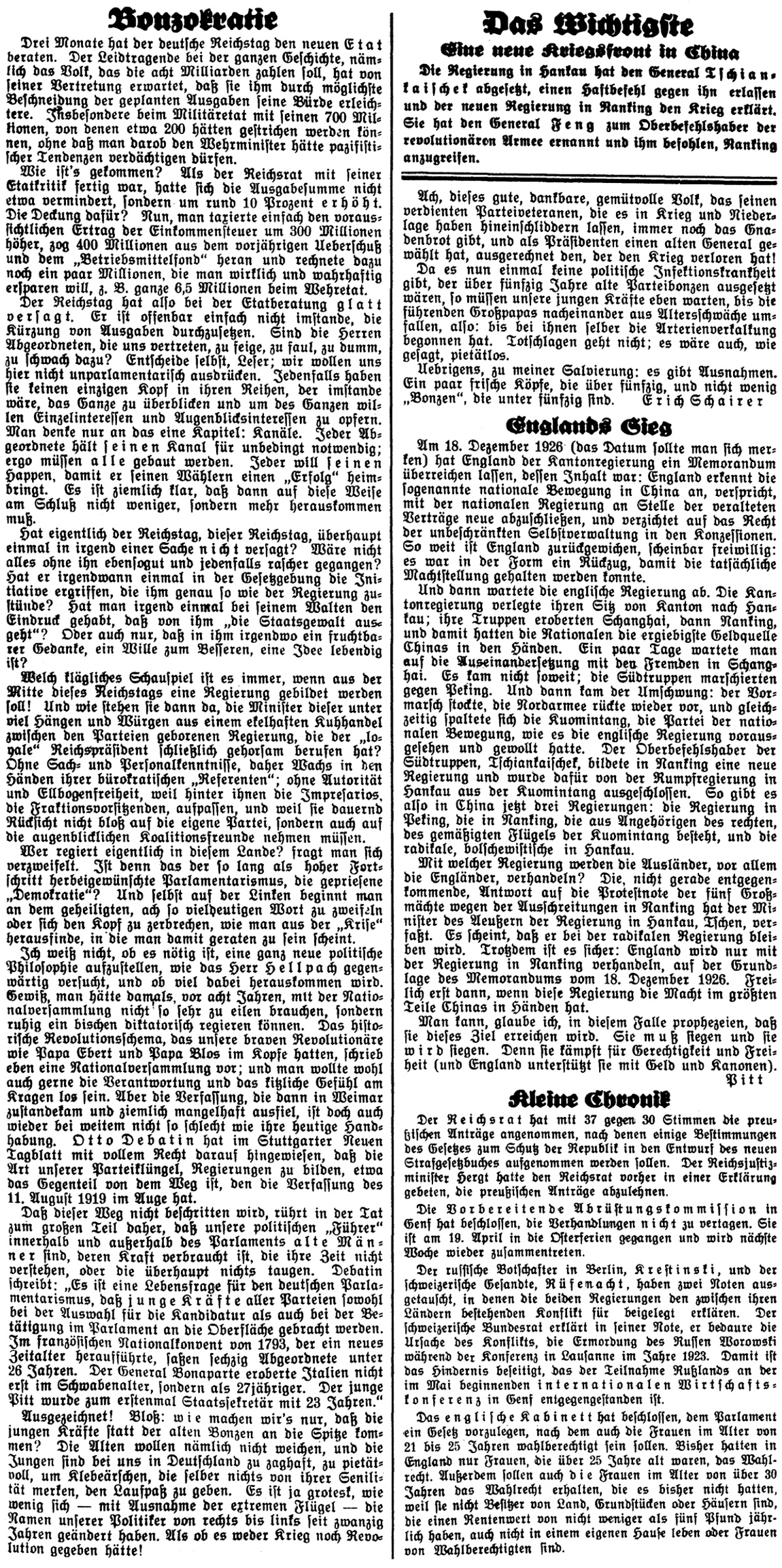 2. Januar 1927 9. Januar 1927 16. Januar 1927 23. Januar 1927 30. Januar 1927 6. Februar 1927 13. Februar 1927 20. Februar 1927 27. Februar 1927 6. März 1927 13. März 1927 20. März 1927 27. März 1927 3. April 1927 10. April 1927 17. April 1927 24. April 1927 1. Mai 1927 8. Mai 1927 15. Mai 1927 22. Mai 1927 29. Mai 1927 5. Juni 1927 12. Juni 1927 19. Juni 1927 26. Juni 1927 3. Juli 1927 10. Juli 1927 17. Juli 1927 24. Juli 1927 31. Juli 1927 7. August 1927 14. August 1927 21. August 1927 28. August 1927 4. September 1927 11. September 1927 18. September 1927 25. September 1927 2. Oktober 1927 9. Oktober 1927 16. Oktober 1927 23. Oktober 1927 30. Oktober 1927 6. November 1927 13. November 1927 20. November 1927 27. November 1927 4. Dezember 1927 11. Dezember 1927 18. Dezember 1927 25. Dezember 1927