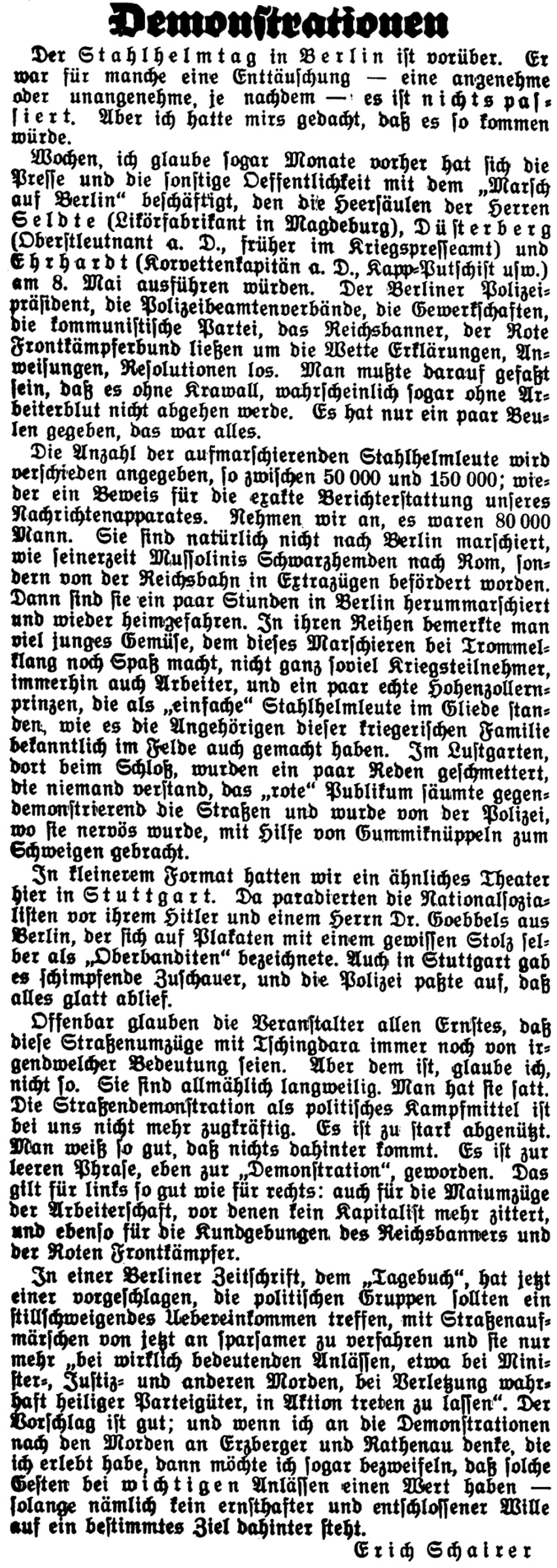 19. März: In Berlin kommt es zwischen bewaffneten Verbänden der Nationalsozialisten und der Kommunisten zu schweren Straßenschlachten.
