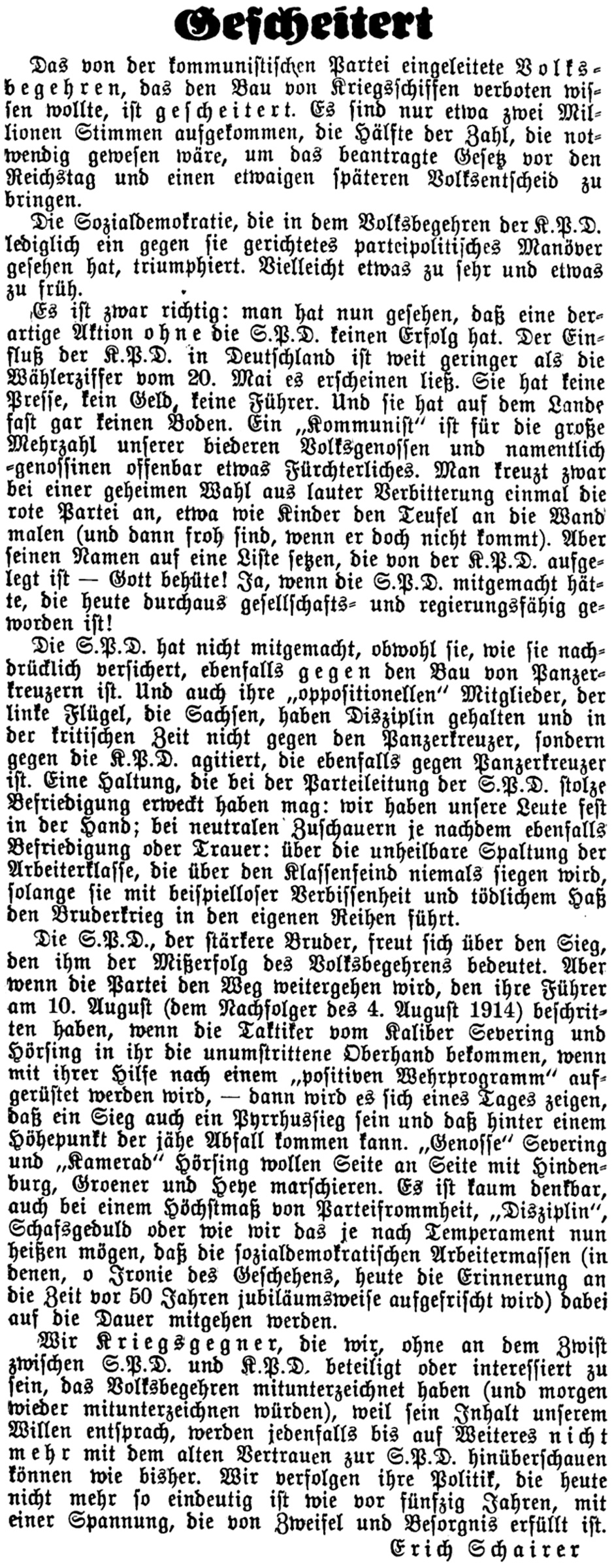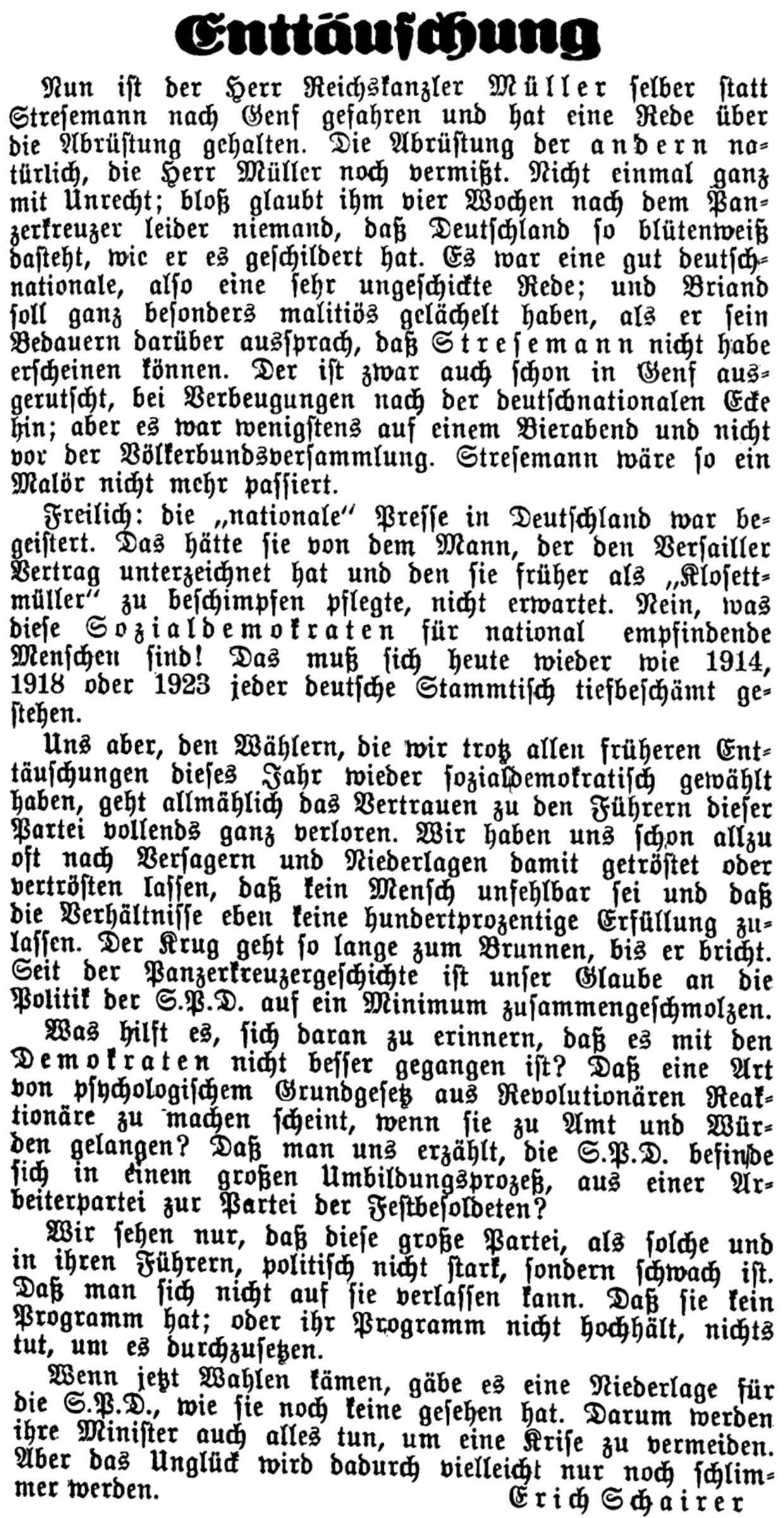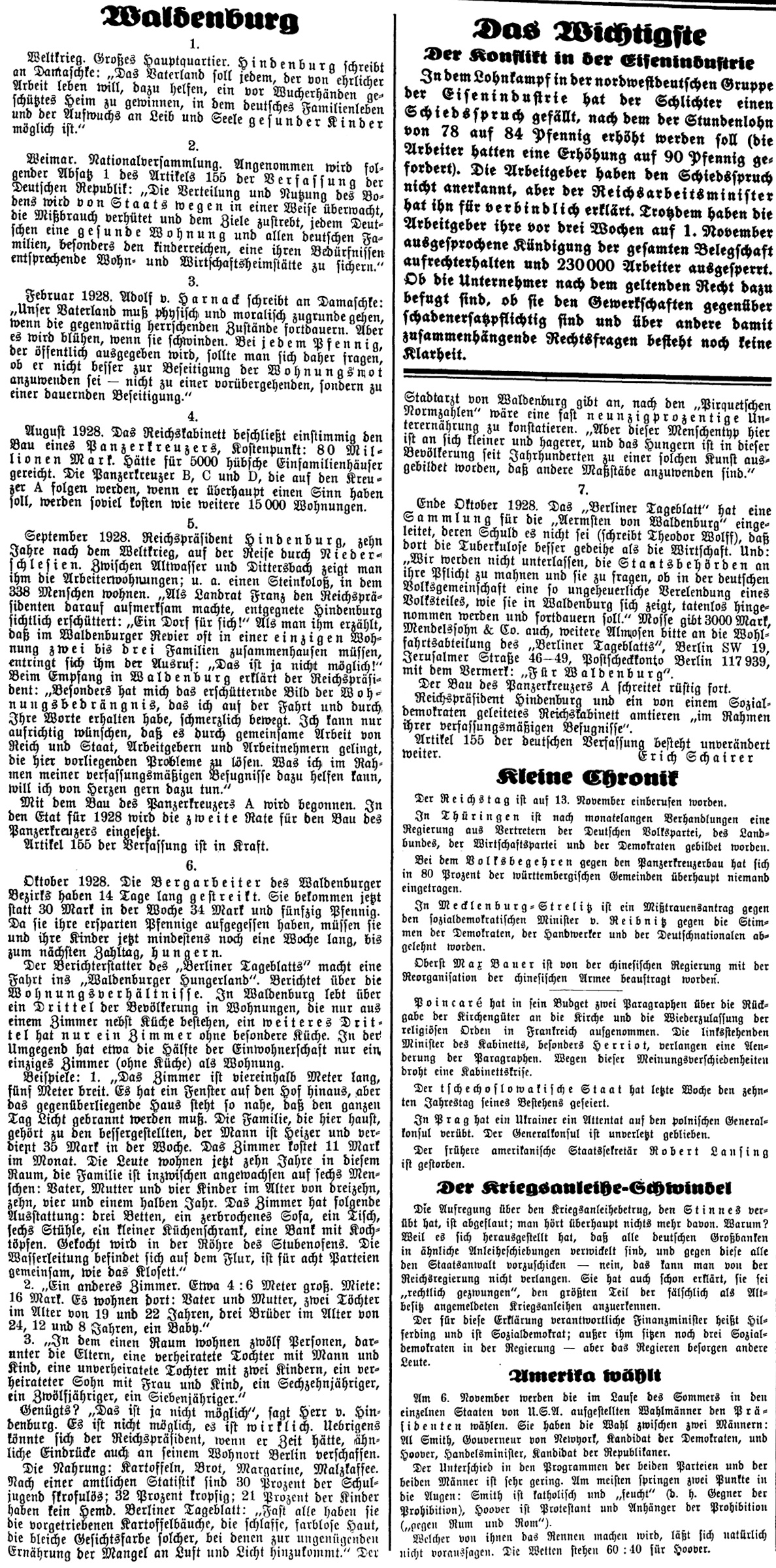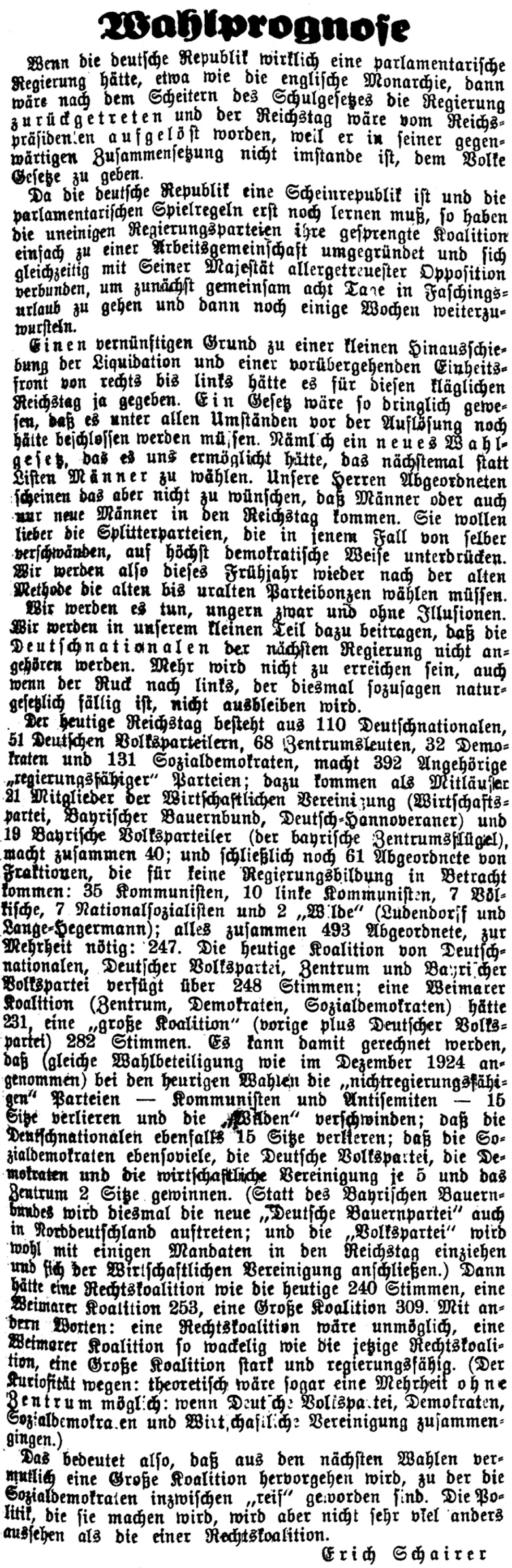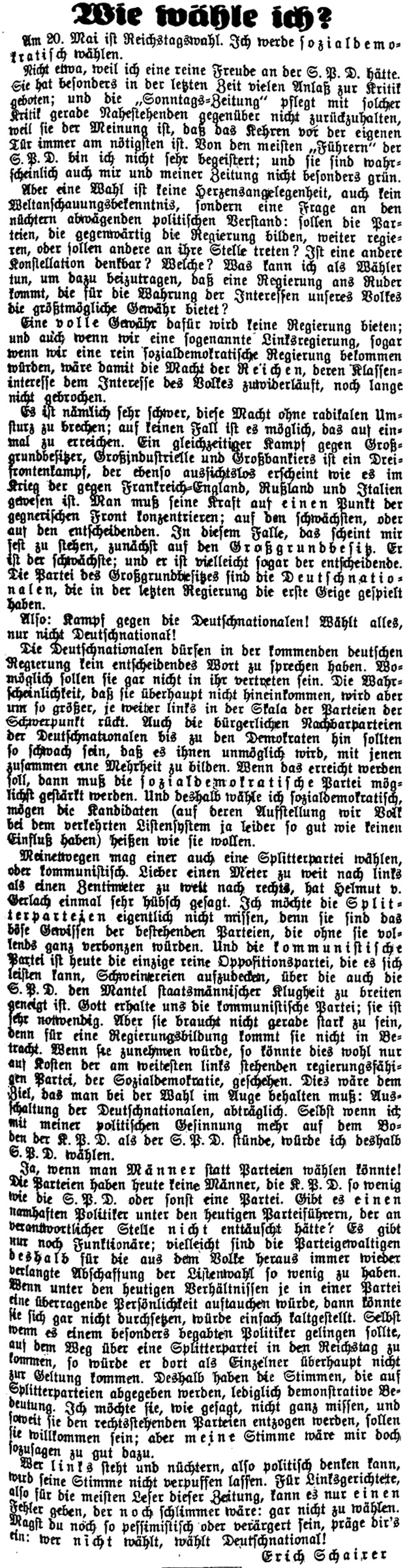 20. Mai: Reichstagswahlen in Deutschland: Verluste der DNVP (von 20.5 auf 14,3 %) und der liberalen Parteien; Stimmengewinne der SPD (von 26,0 % auf 29,8 %).