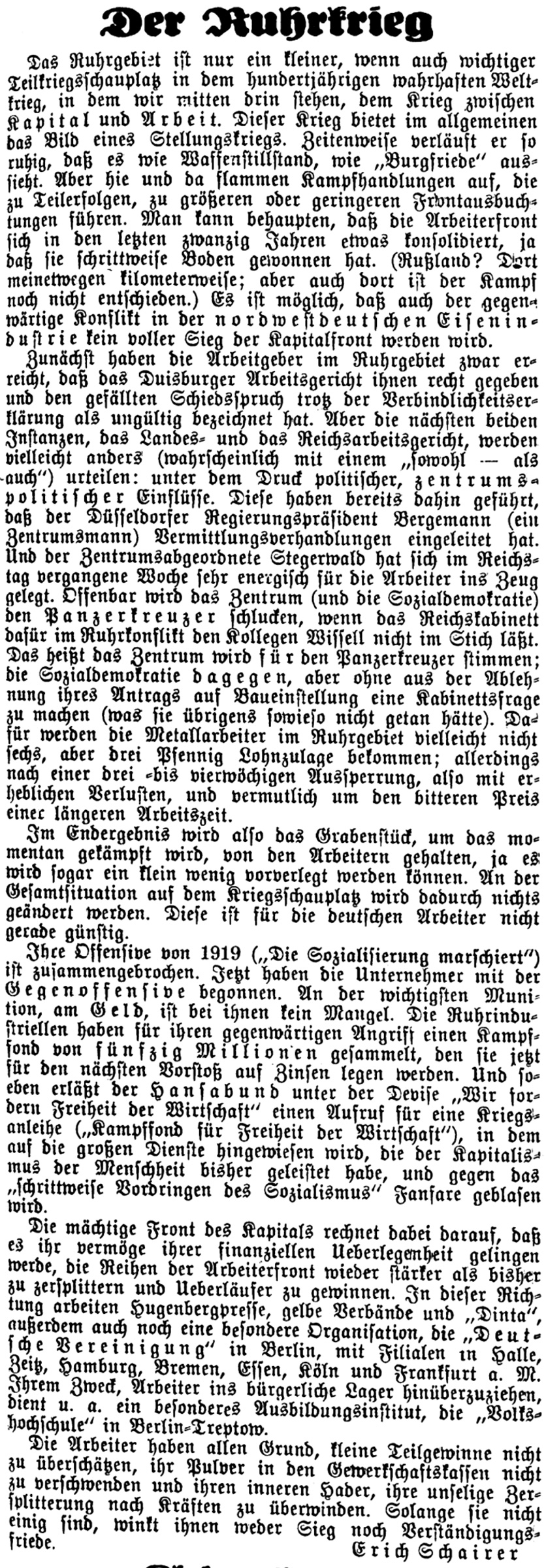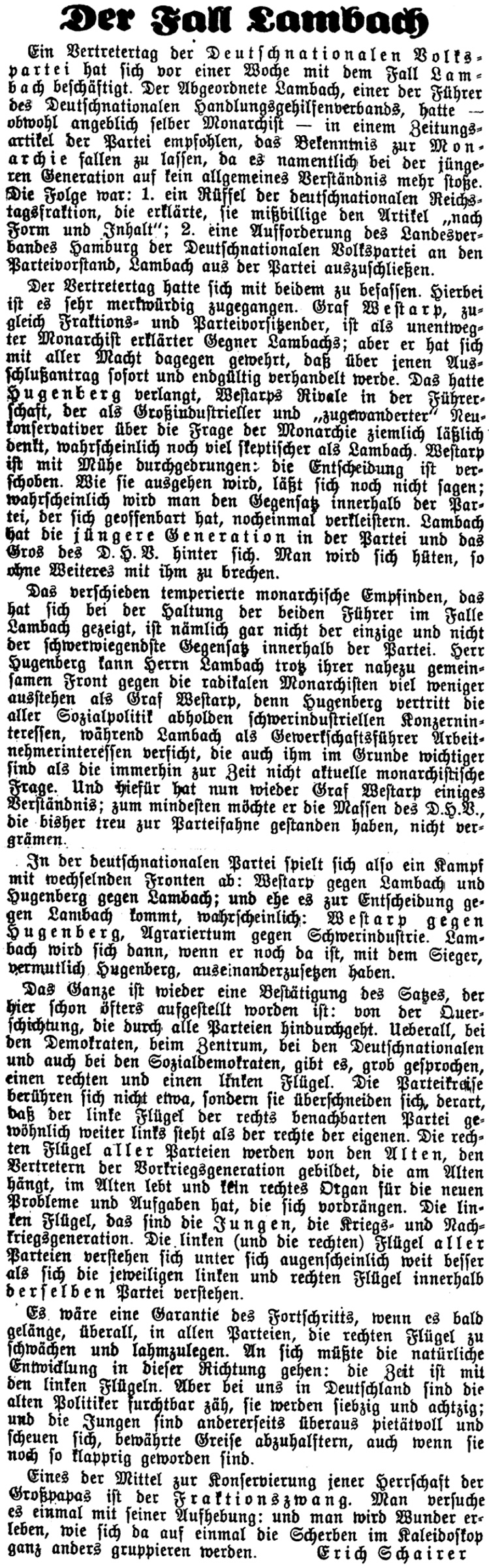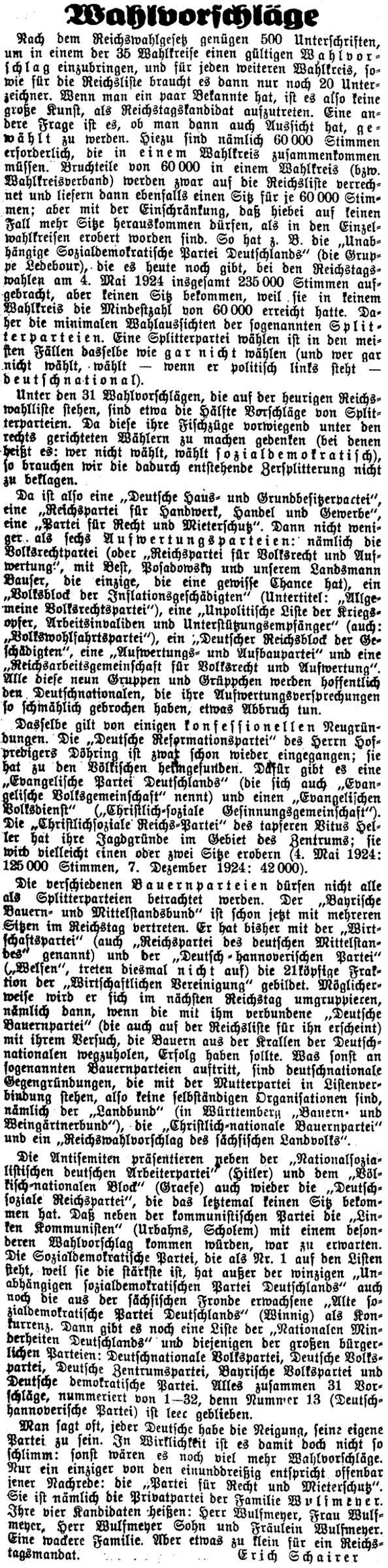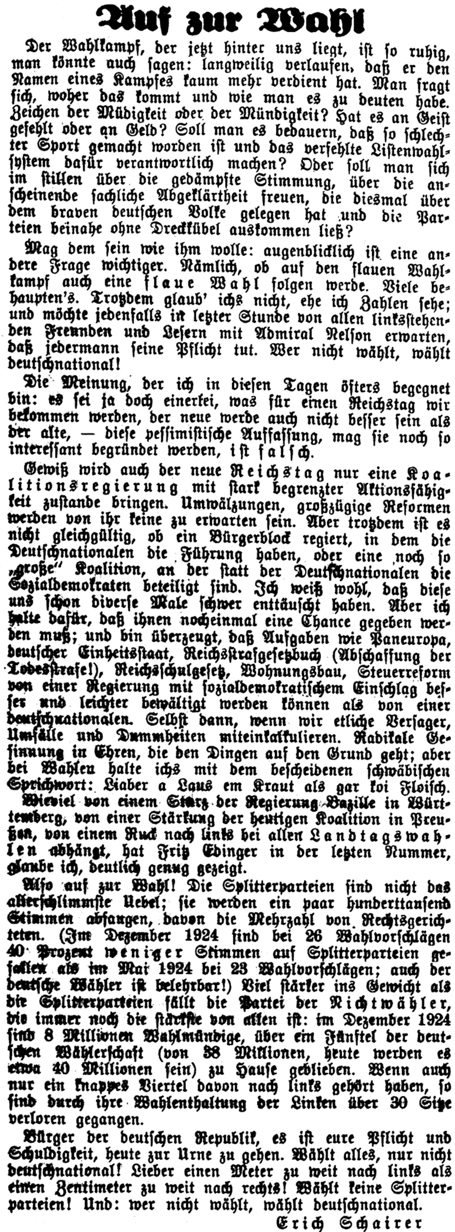 20. Mai: Reichstagswahlen in Deutschland: Verluste der DNVP (von 20.5 auf 14,3 %) und der liberalen Parteien; Stimmengewinne der SPD (von 26,0 % auf 29,8 %).