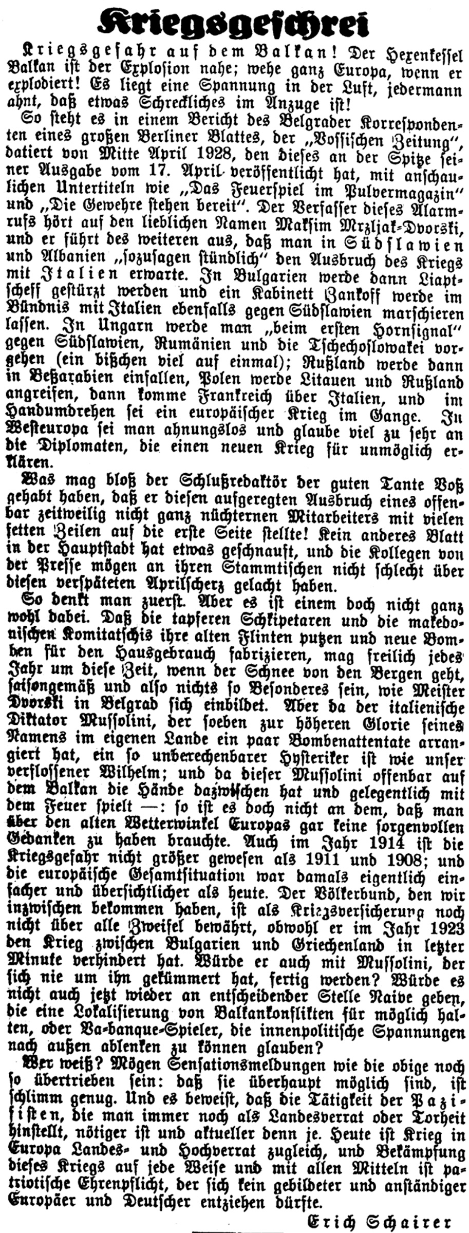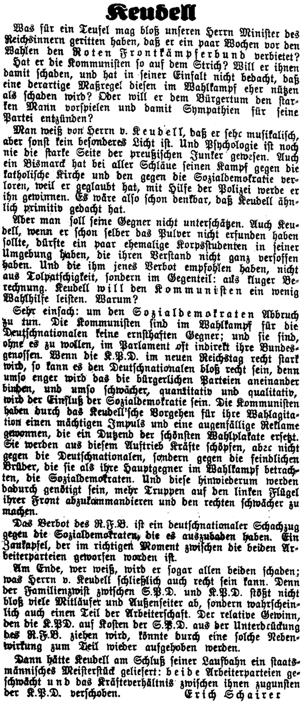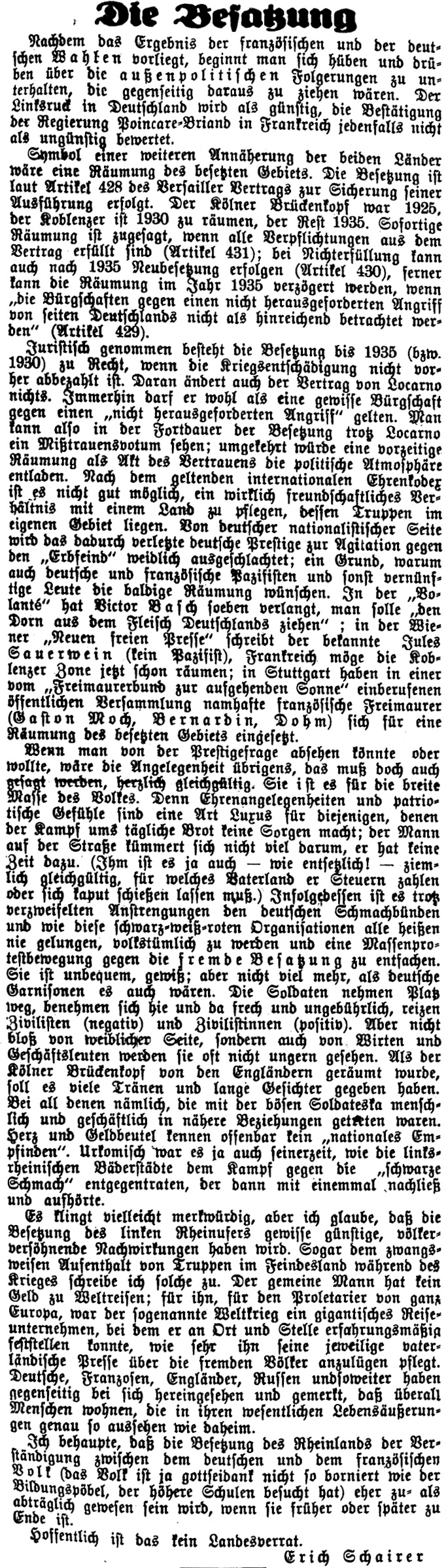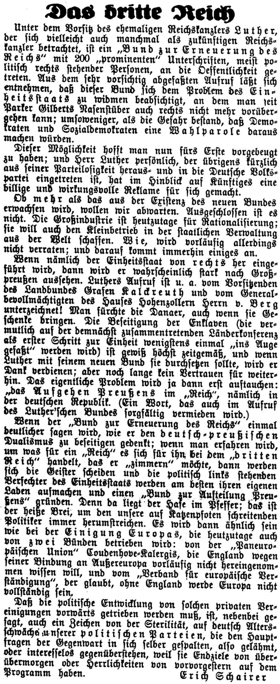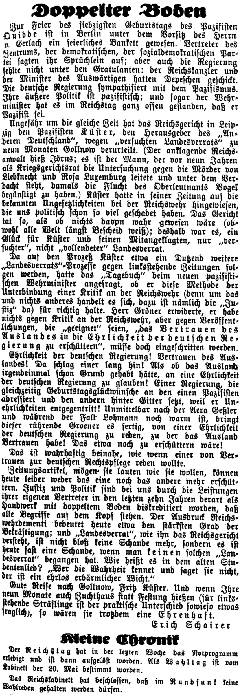 20. Mai: Reichstagswahlen in Deutschland: Verluste der DNVP (von 20.5 auf 14,3 %) und der liberalen Parteien; Stimmengewinne der SPD (von 26,0 % auf 29,8 %).