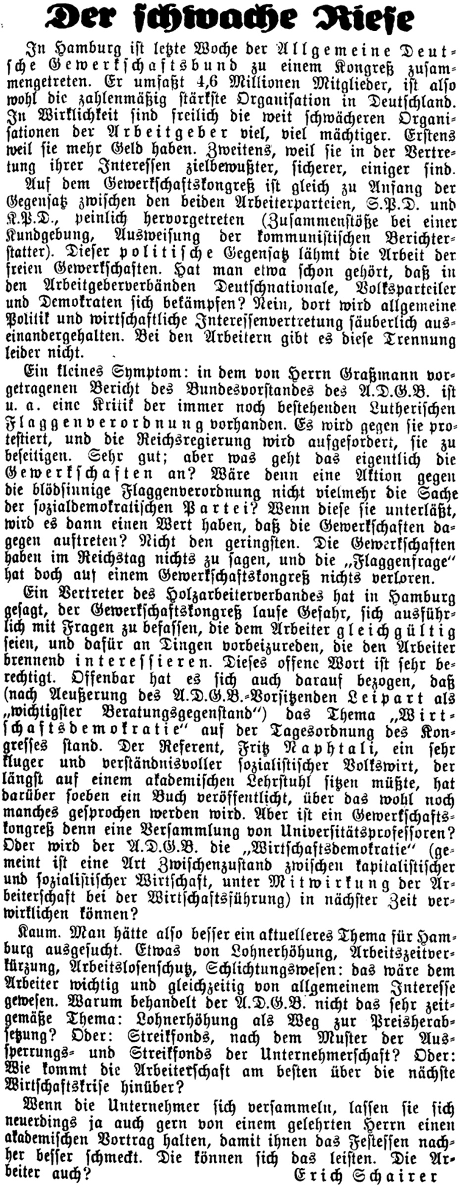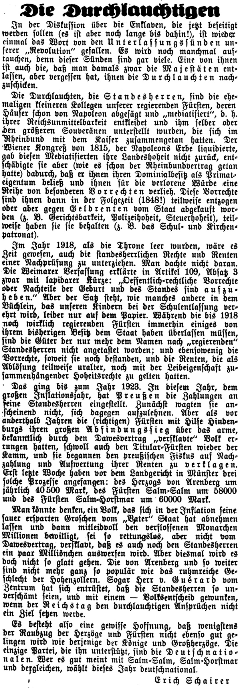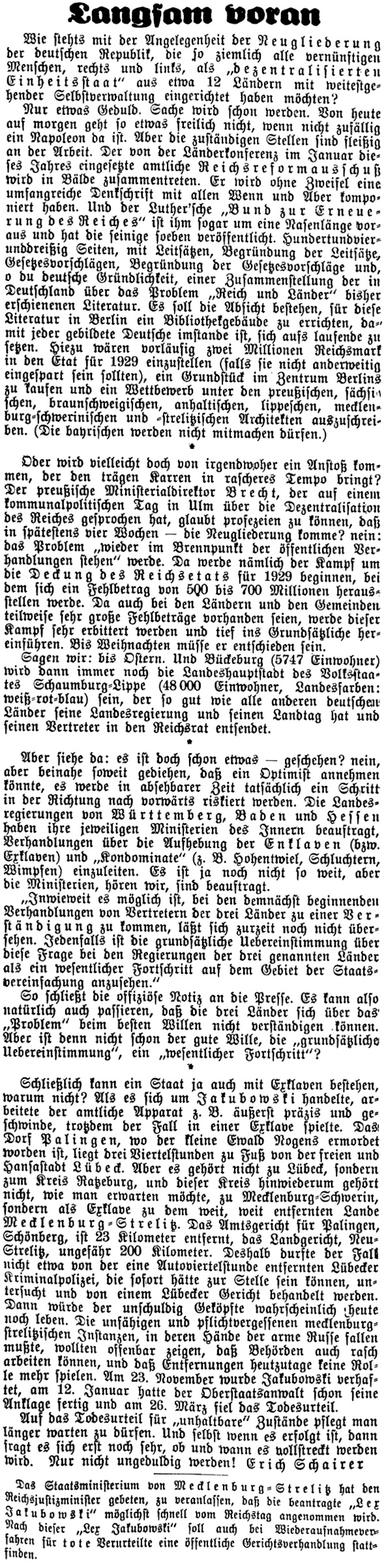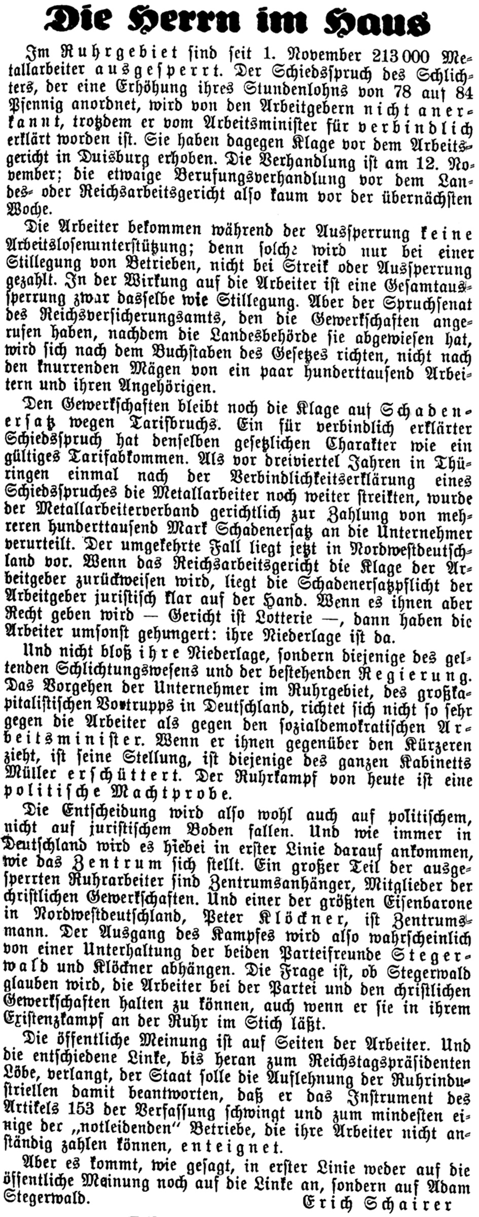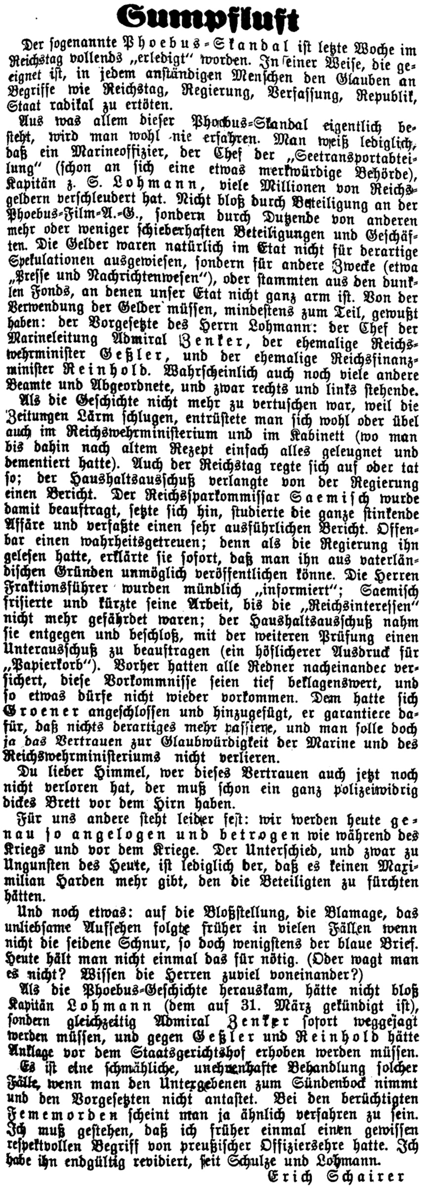 20. Mai: Reichstagswahlen in Deutschland: Verluste der DNVP (von 20.5 auf 14,3 %) und der liberalen Parteien; Stimmengewinne der SPD (von 26,0 % auf 29,8 %).