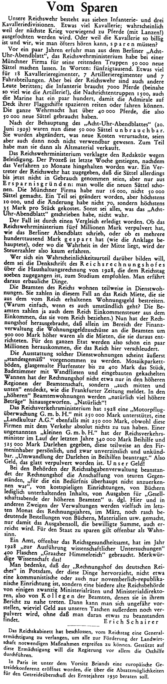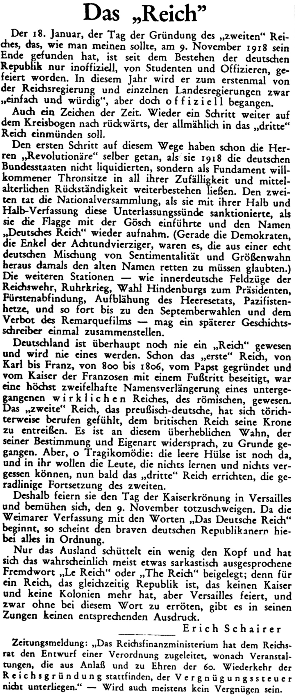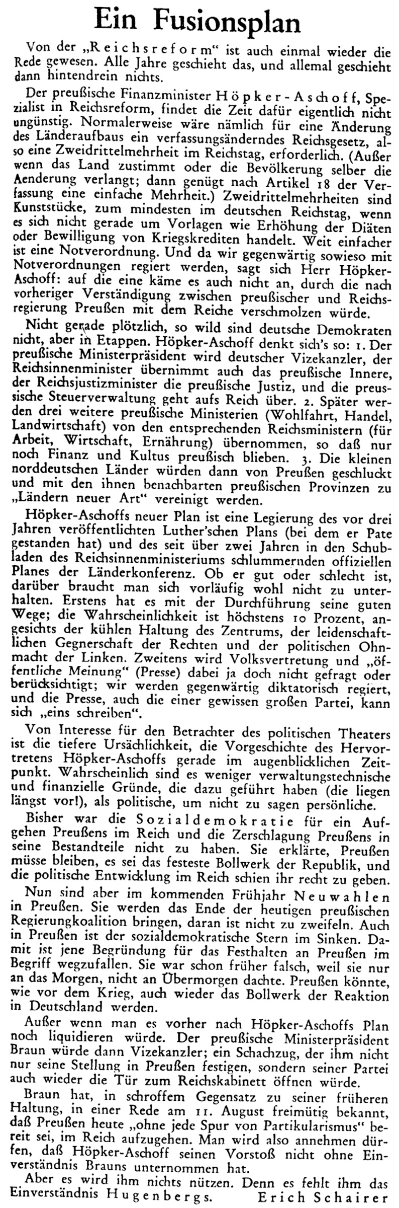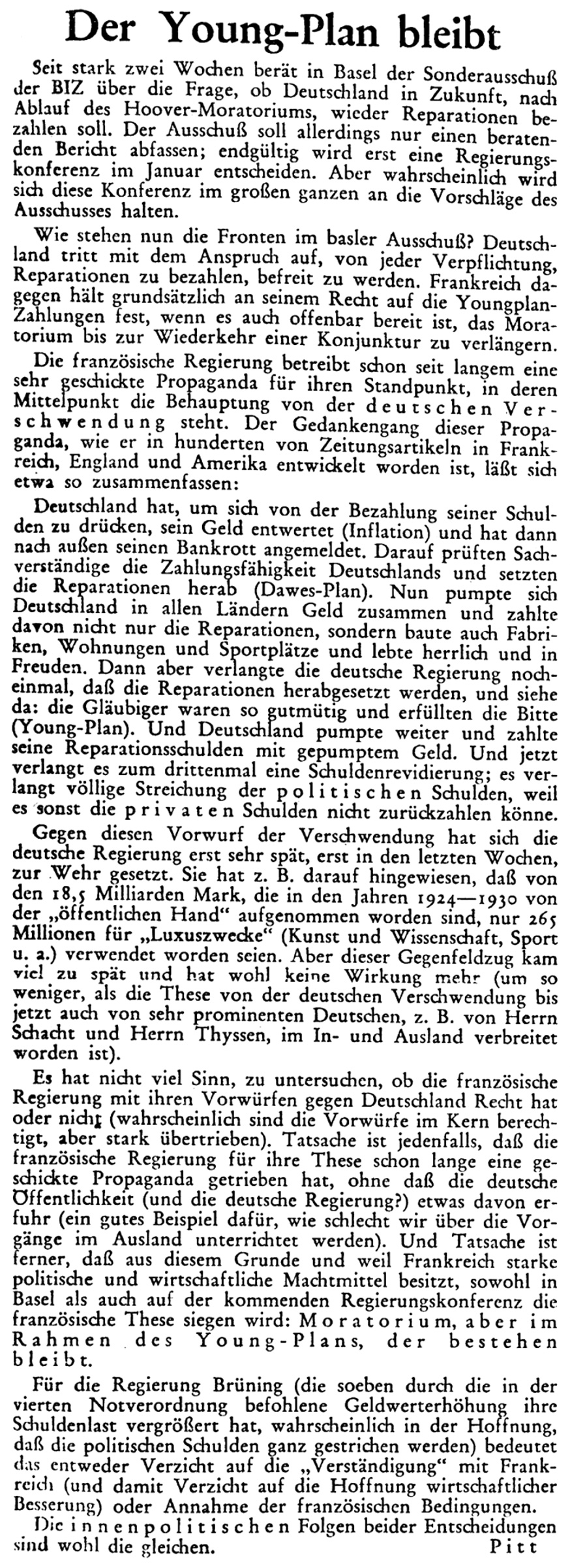 20. Juni: Um das in der Weltwirtschaftskrise geschwundene Vertrauen der Kapitalmärkte zu stärken, schlägt der amerikanische Präsident Herbert Hoover ein einjähriges Moratorium für Reparationen und Interalliierte Kriegsschulden vor.