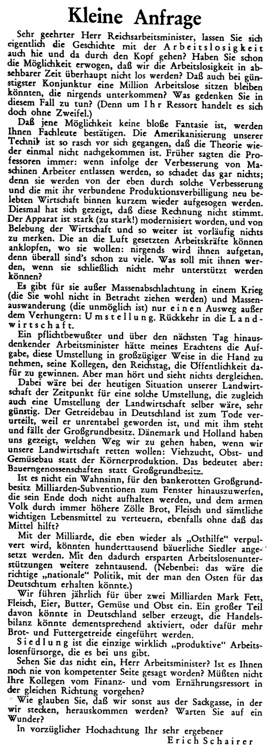 1931/1932: Die Wirtschaftskrise in Deutschland erreicht ihren Höhepunkt. Es gibt 70.000 Konkurse und 6 Millionen Arbeitslose.