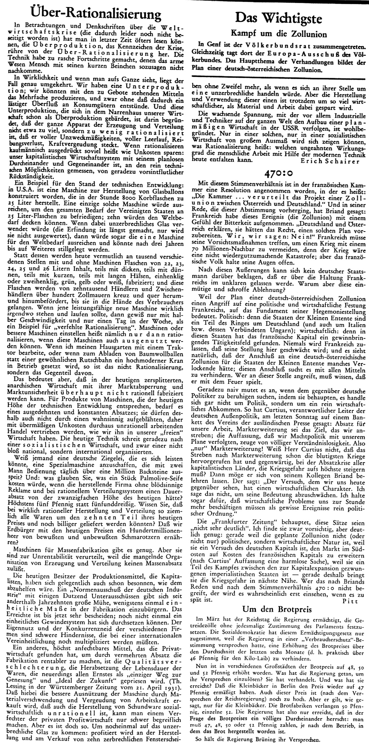 11. Mai: Die Österreichische Credit-Anstalt erklärt ihre Zahlungsunfähigkeit und löst damit eine erhebliche Finanzkrise aus. Das Kreditinstitut wird in der Folge durch Sanierungsmaßnahmen und mit staatlicher Hilfe vor dem endgültigen Ruin gerettet.